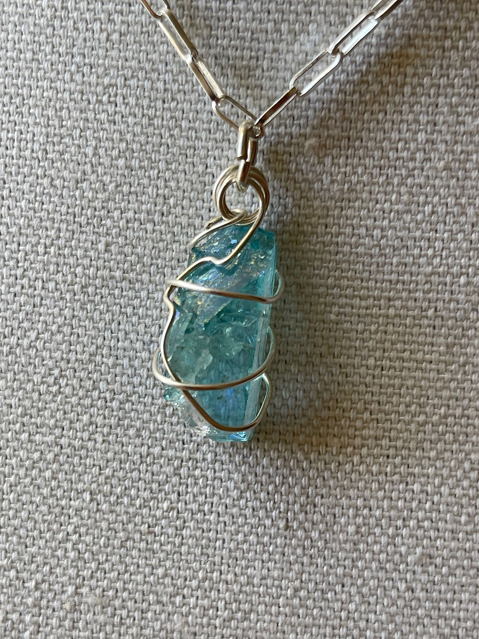 Silver and aqua aura pendant necklace